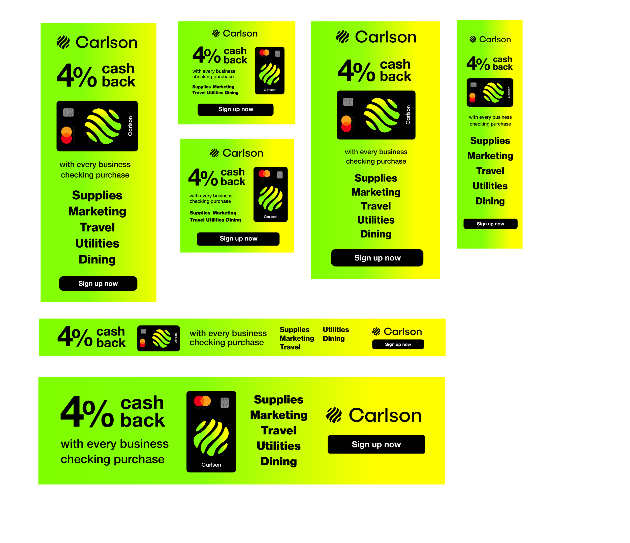 Carlson is a financial technology company founded on the premise that basic banking services should be helpful, easy, and free. We created their brand to focus on independent entrepreneurs. I created the strategy, brand design, and marketing campaign.