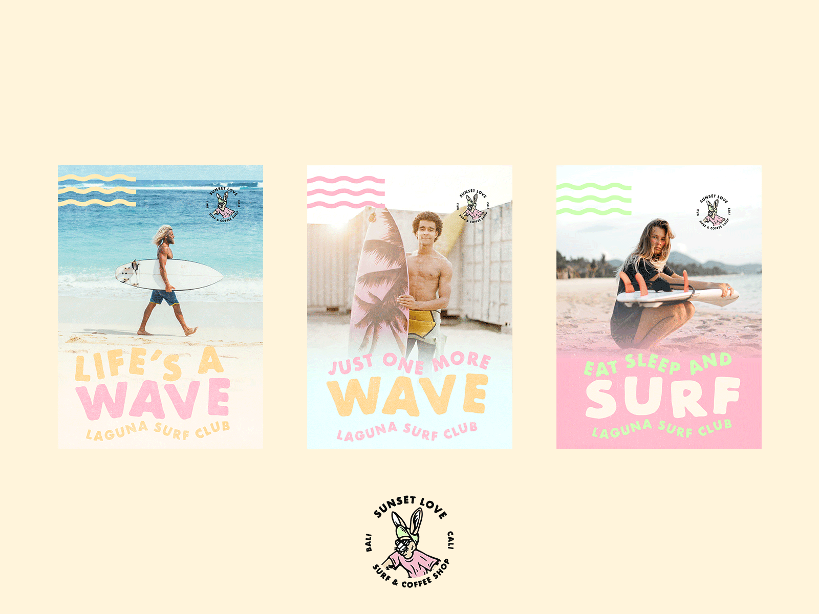 Sunset Love is a surf and coffee shop based in Bali and Laguna Beach, California. The brand was inspired by the surf lifestyle in Bali. After owning a surf shop in Padang Padang, Bali for decades, they will be opening a few physical shops in southern California. MIA/HUNTER was tasked with creating the brand, packaging design, and online shop. We collaborated with Ilham Afrora a talented illustrator and designer based in Indonesia. He was able to capture the founder’s vision for something fun and hip.